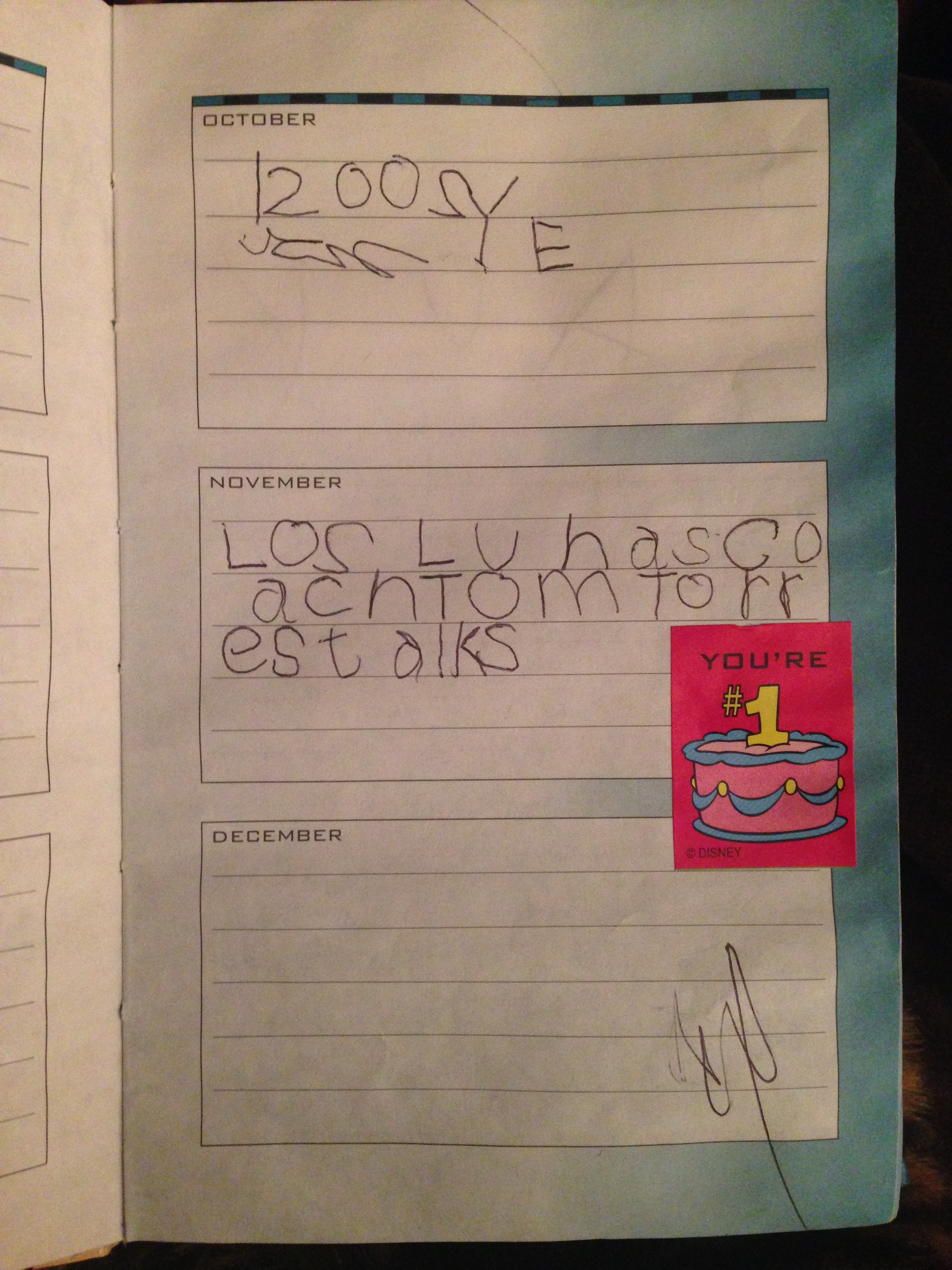 See here. I wasn’t coherent enough to write in a language that already exists, but I still gave myself the “You’re #1” sticker. A sign of self-entitlement, narcissism, and overall “A for participation,” also known as, the downfalls of millennials.